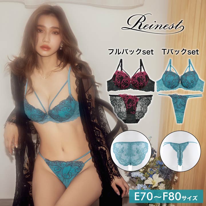 ブラジャー ショーツ ドラマティック エレガント ブラジャー & 選べる バック透け フルバック or Tバック ショーツ [Reinest] | 大きいサイズ 下着 レディース セット tバック ティーバック ランジェリー セクシー ランジェリー ブラ セット 上下セット drw