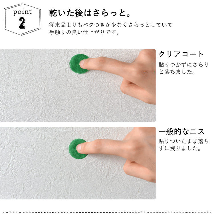 ・壁紙に使用する際は、種類によって塗膜が黄色くなることがあります。
