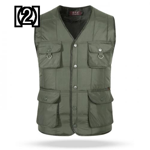 メンズ ダウン ベスト 防寒対策 暖かい アウター 保温性 カジュアル おしゃれ 防寒着 通勤 アウトドア コットン Vネック チョッキ マルチ ポケット