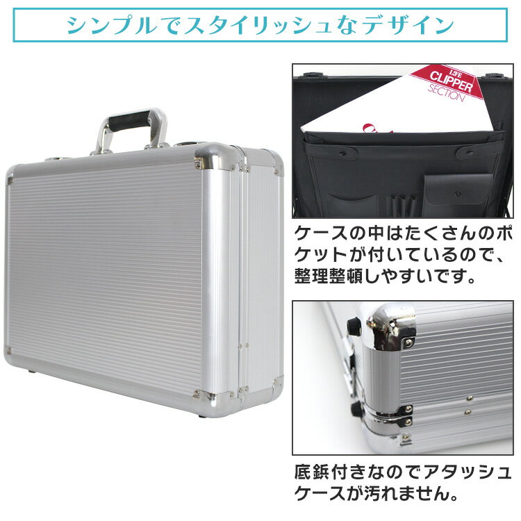 どなたにも似合う人気のシルバー! 軽量で頑丈、抜群の容量を誇るアルミアタッシュケース。